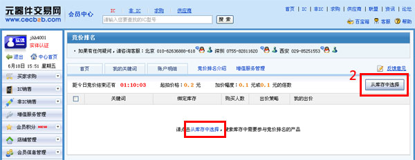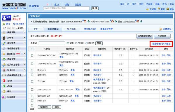 第一步:登錄會員中心,進入會員中心-增值服務管理-競價排名-我的關鍵詞