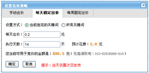 第三步:設置出價金額及執行天(周)數,點擊“確定”即可